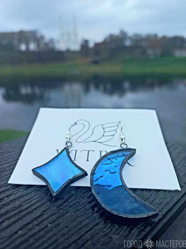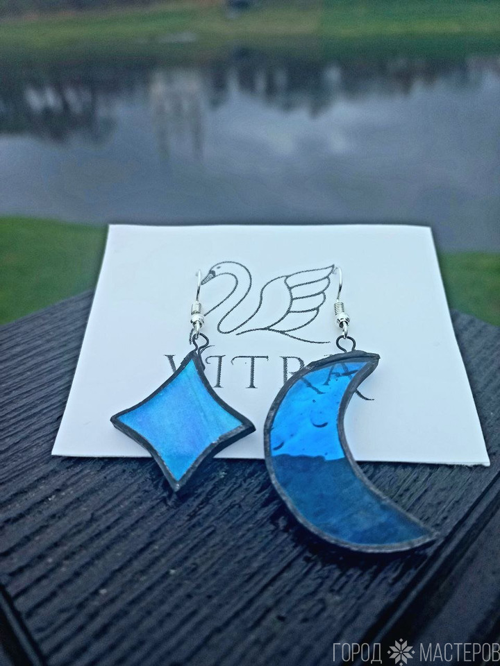 Пара серьг - асиметричные сережки, луна и звезда ✨️ ручная работа