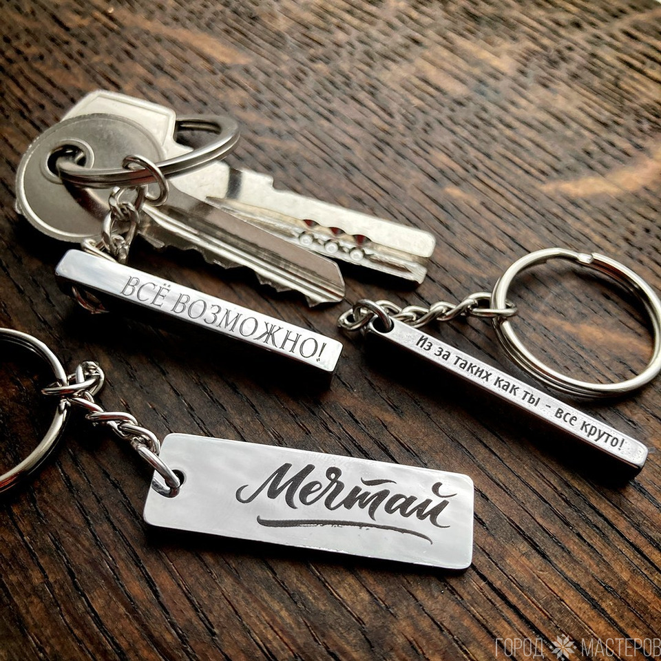 Миниатюрные и стильные брелоки с лазерной гравировкой самого важного: имя, значимая дата или просто особенный текст.