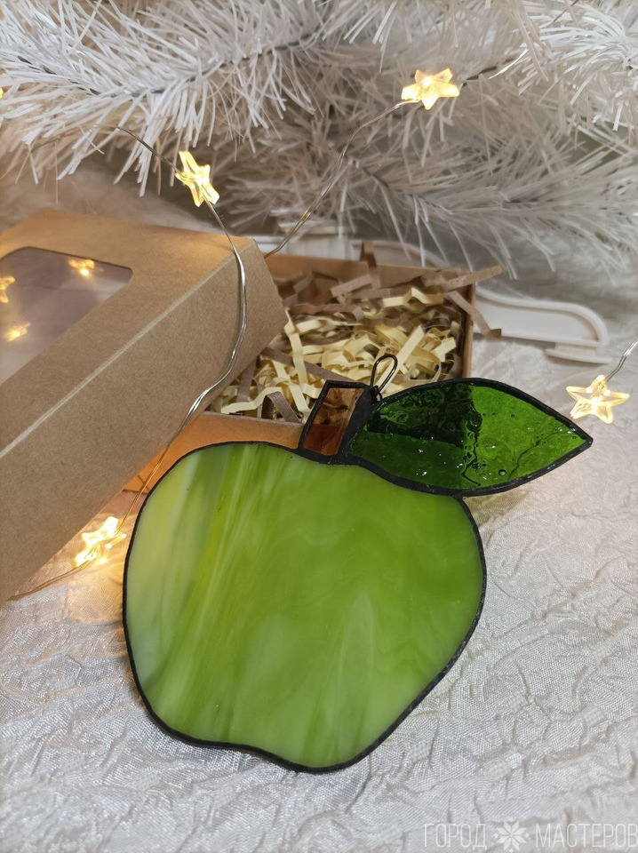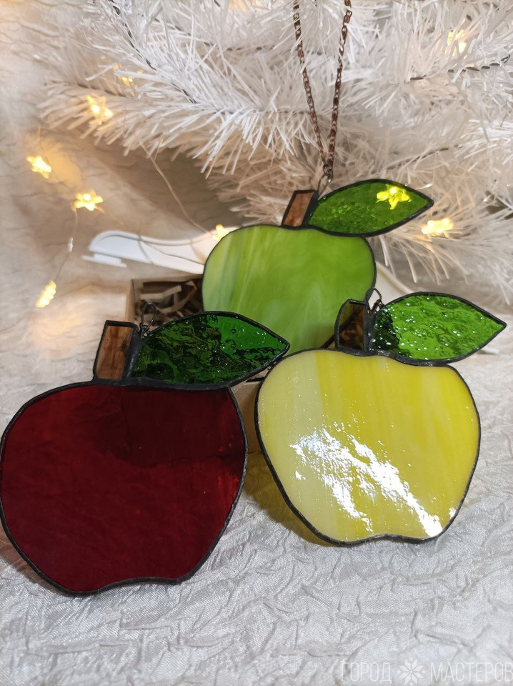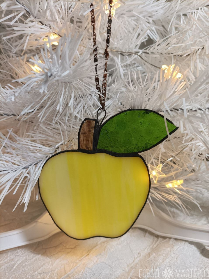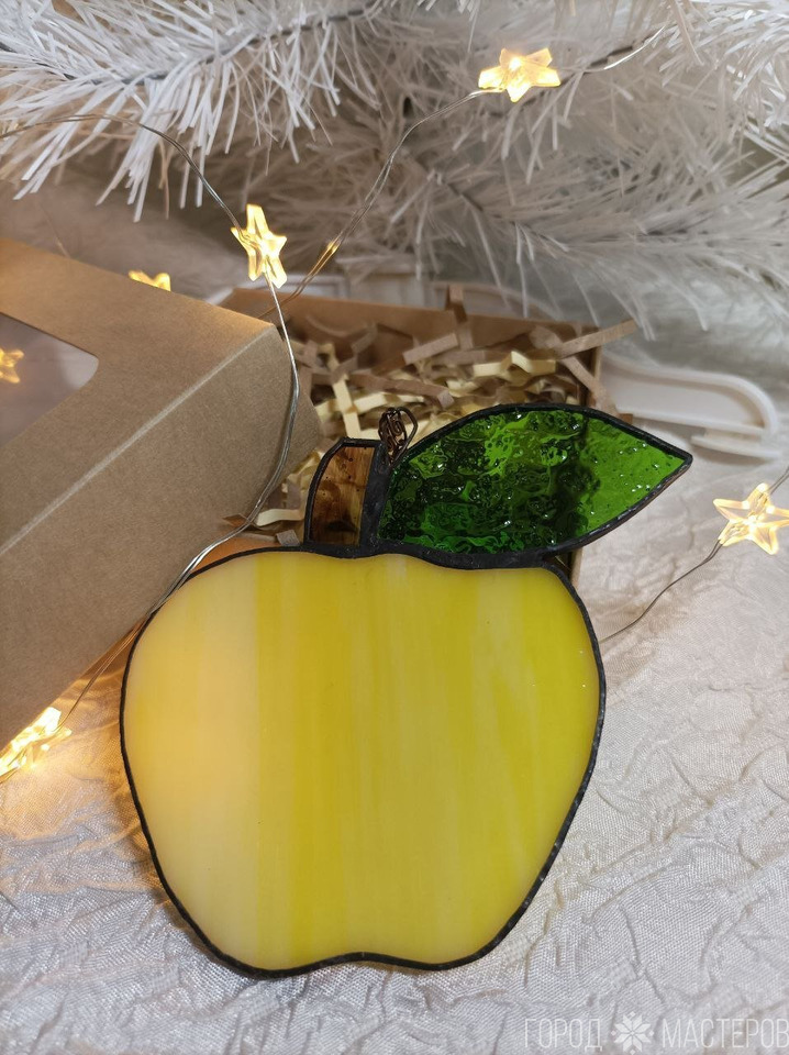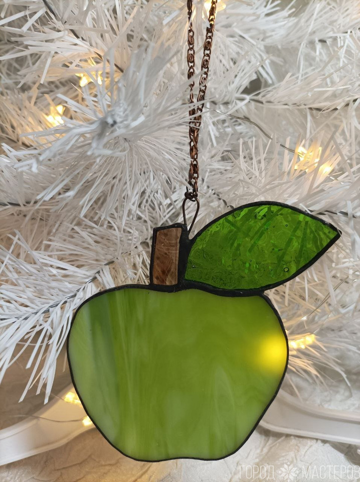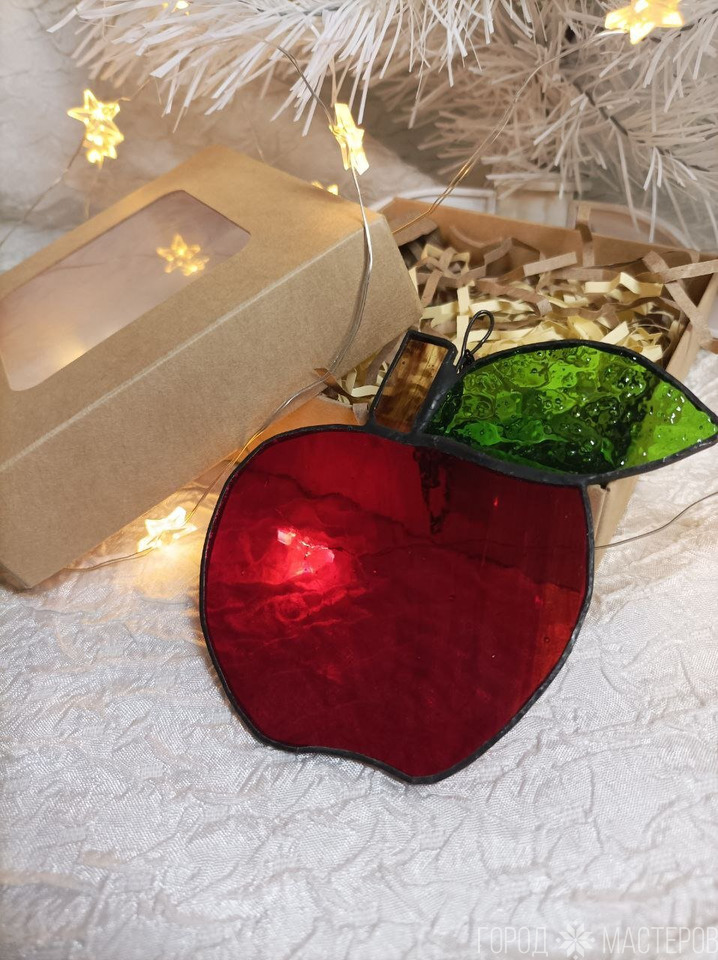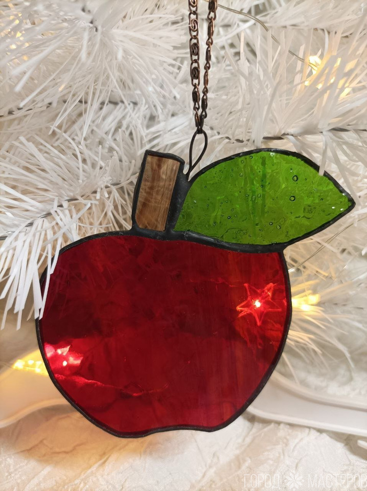 Игрушка-подвеска из витражного стекла выполнена в технике Тиффани "Яблоко" ручной работы ※ Полоцк