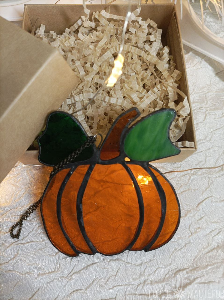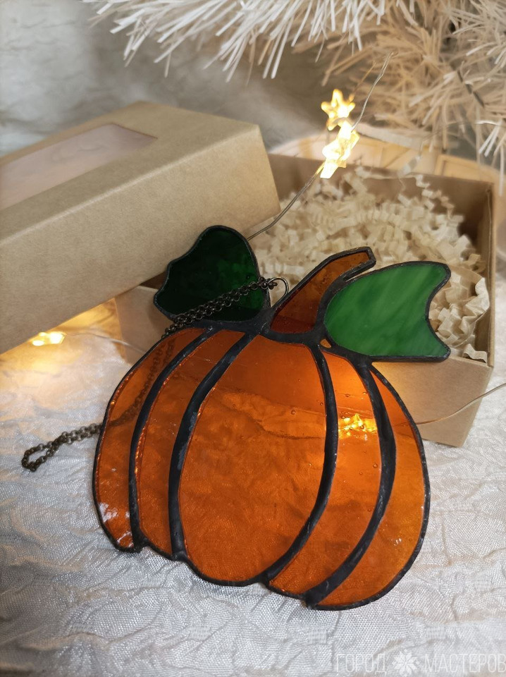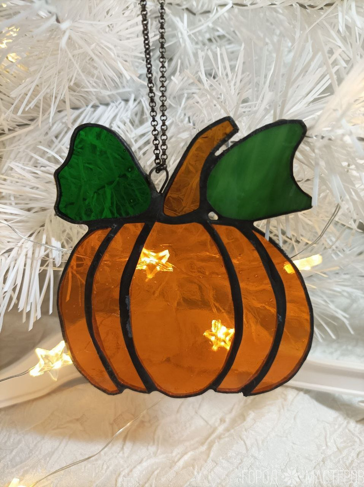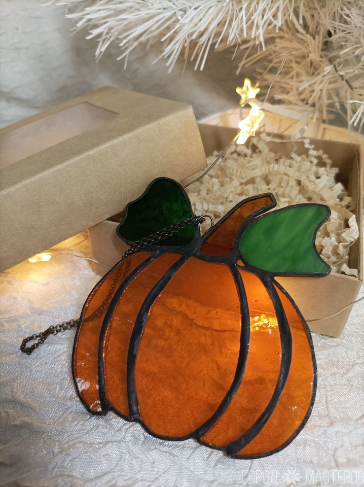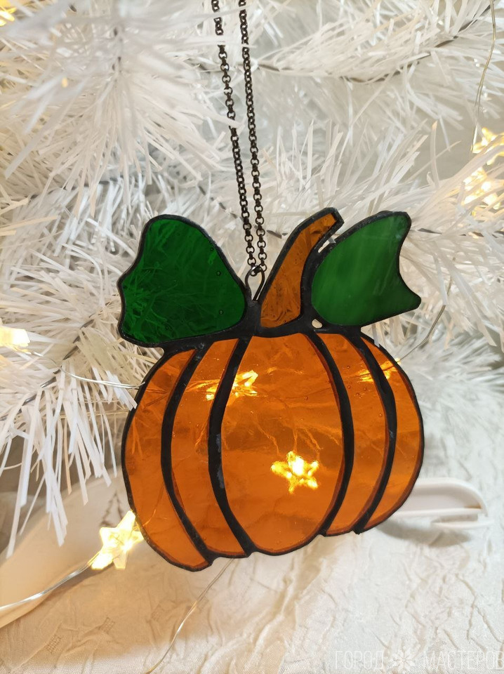 Игрушка-подвеска из витражного стекла выполнена в технике Тиффани "Тыква"