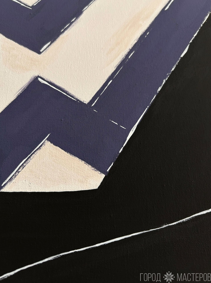 Картина демонстрирует момент самоанализа, когда разум выстраивает структуры для понимания самого себя. Пространственные формы создают эффект глубины, а контраст цветов делает композицию выразительной и динамичной.