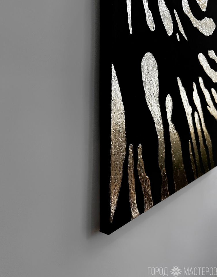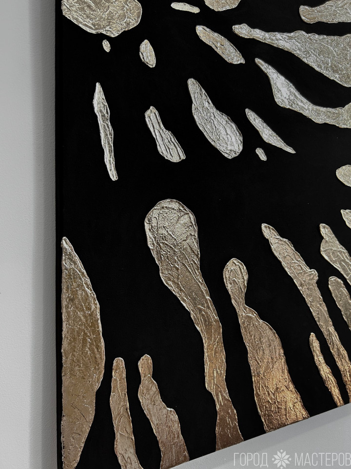 Материалы: Холст на подрамнике, акрил, текстурная паста, поталь