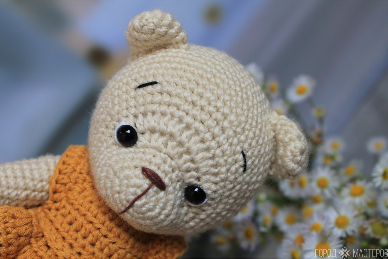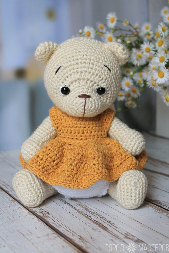 Мишка вязаный крючком. Одежда снимается. Ростом примерно 19 см Белпочта, Европочта пересылка по предоплате. Самовывоз по договоренности ст.м. Малиновка