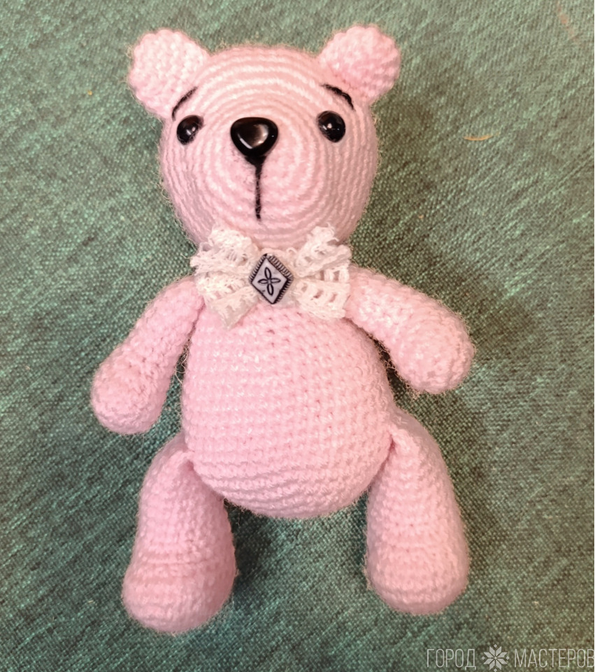 Мишка девочка, высота 14 см, акрил, холофайбер, глаза и нос на безопасном креплении. В коробке.