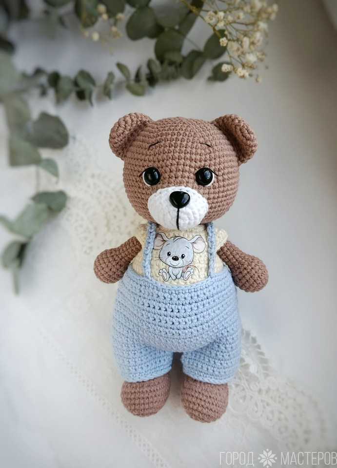 Мишка вязаный крючком. Одежда снимается. Ростом примерно 18-19 см Белпочта, Европочта пересылка по предоплате. Самовывоз по договоренности ст.м. Малиновка