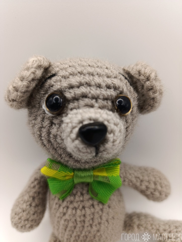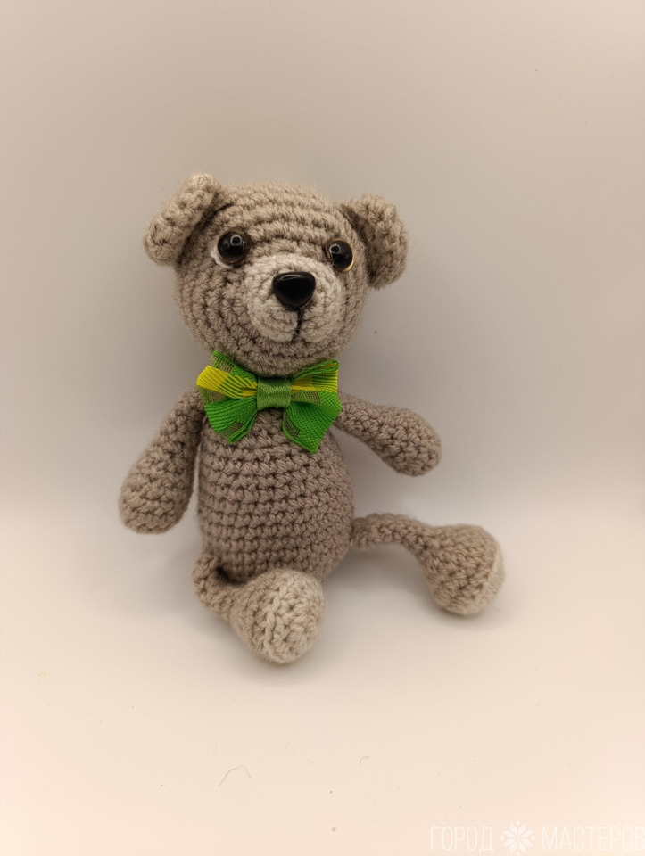 Игрушка вязаная крючком, высота 16 см, лапки подвижные, акрил, холофайбер глаза и нос на безопасном креплении.