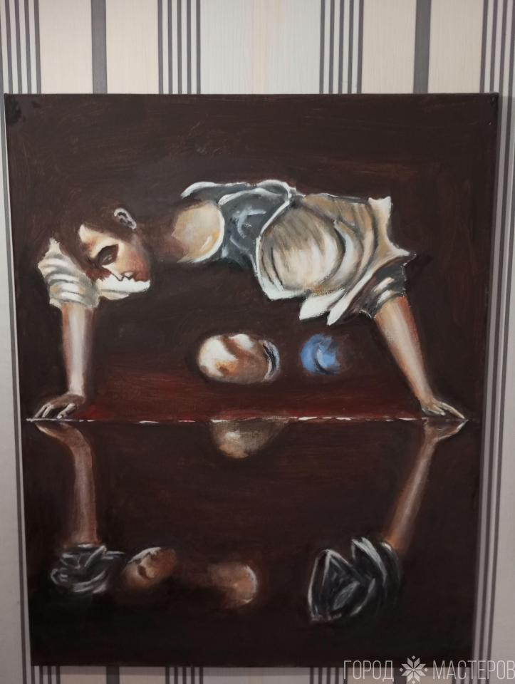 Мини копия картины Винсента Ван Гога Подсолнухи: холст (х/б) на двп, масло, размер 13см х 16см, с обратной стороны есть краткое описание картины и магниты.
