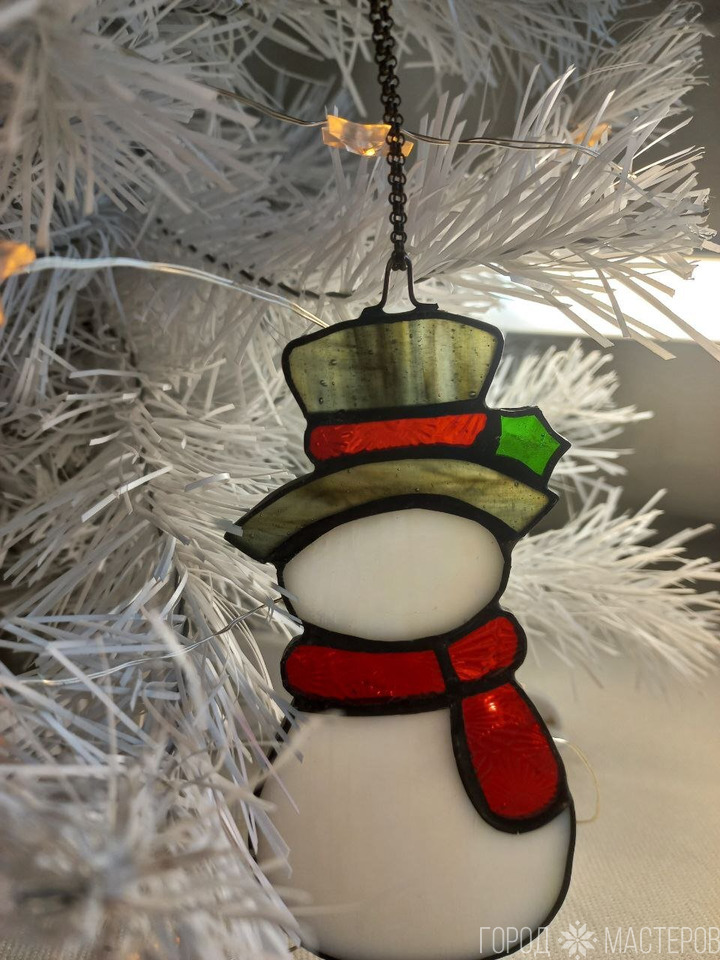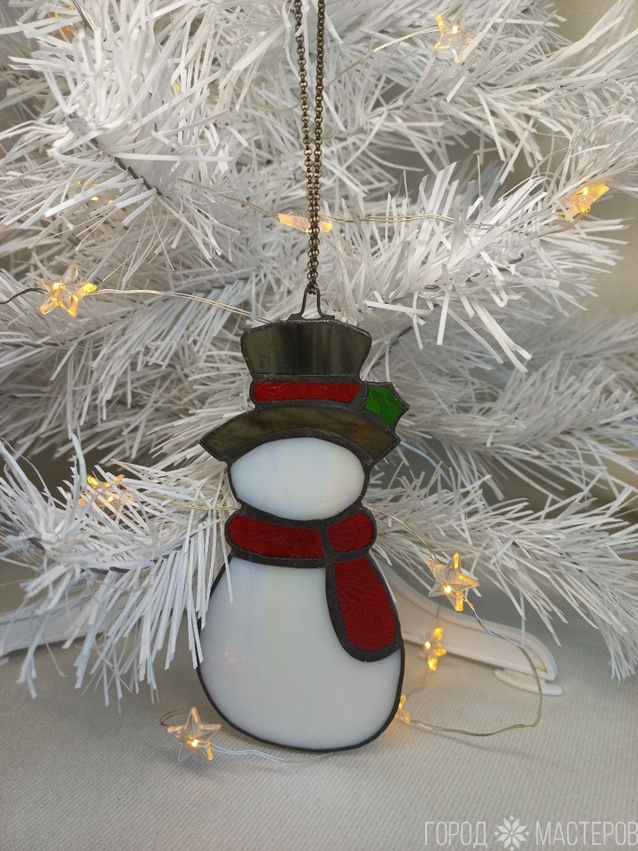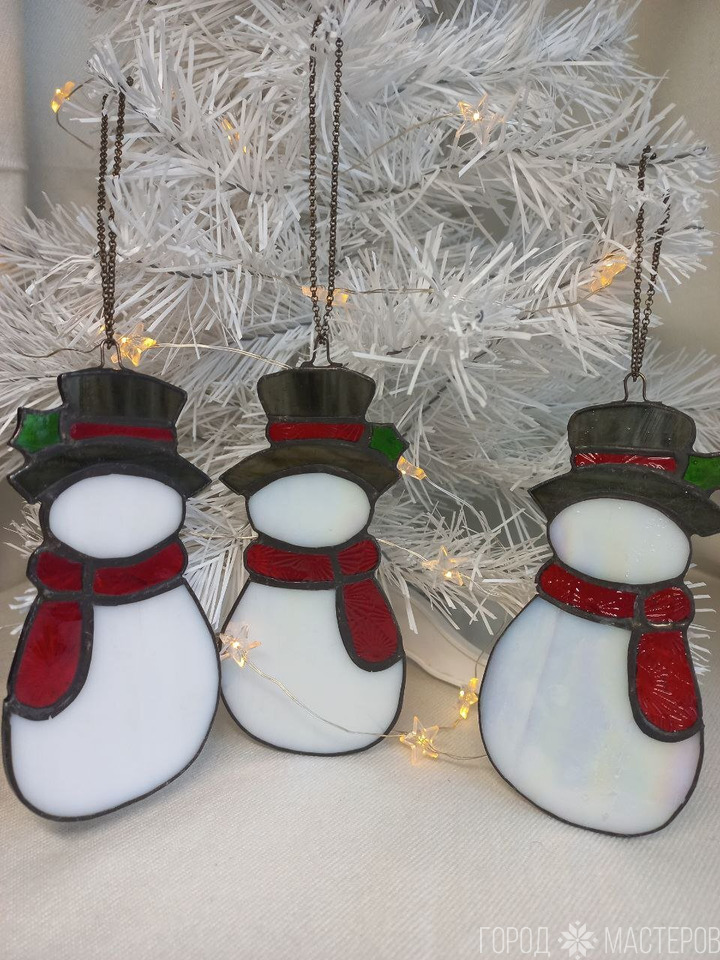 Новогодние подвески из витражного стекла выполнены в технике Тиффани - снеговики☃️