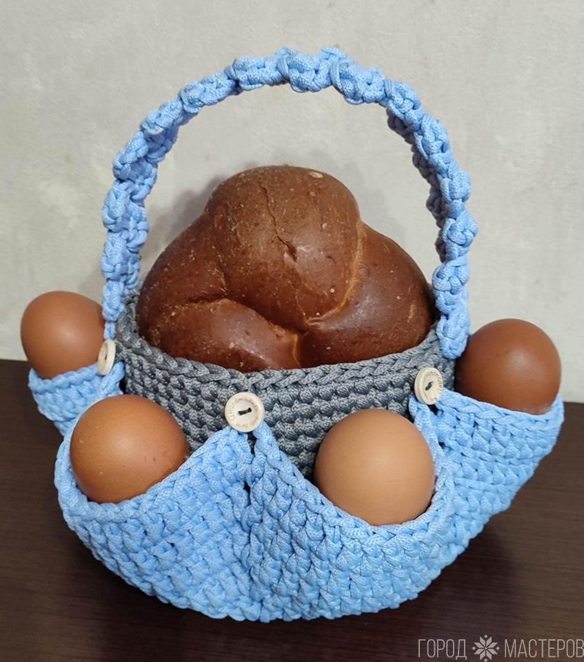 Очаровательная корзинка с кармашками под яйца, а в середину можно поставить кулич! С такой корзинкой будет удобно пойти на освещение яиц и кулича в Храм. Красиво она будет смотреться и на праздничном столе!