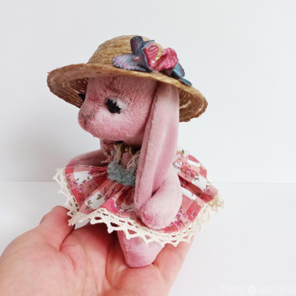 Зайка текстильная. Сидит уверенно. Рост сидя 10 см.