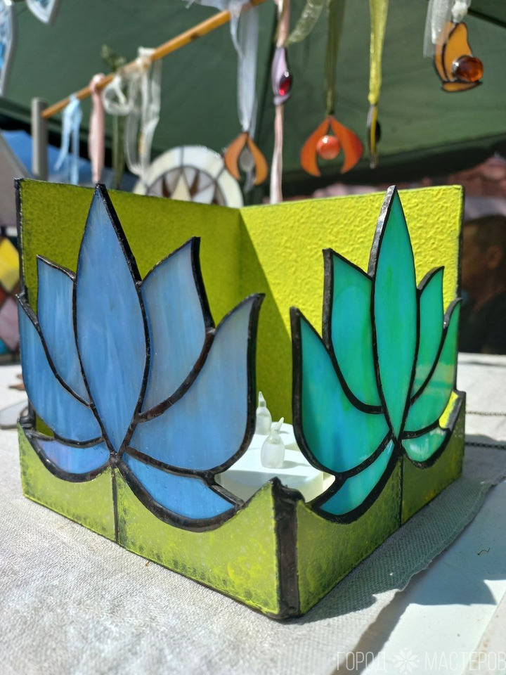 Светильник "Лотосы" 🪷 из витражного стекла выполнен в технике Тиффани ручной работы ※ Полоцк