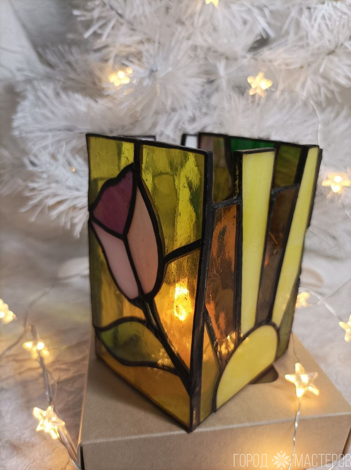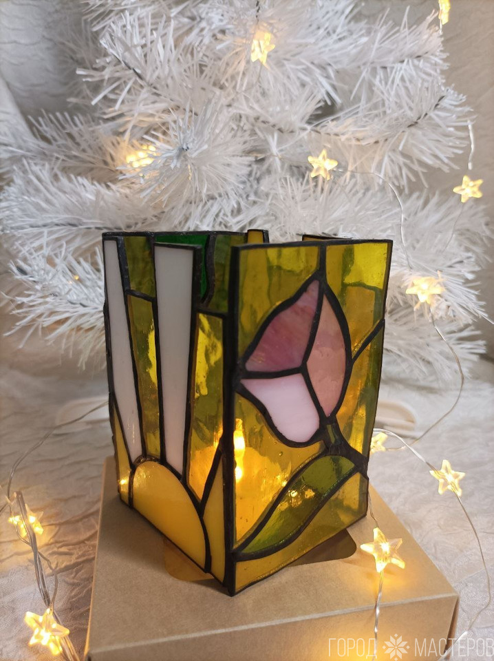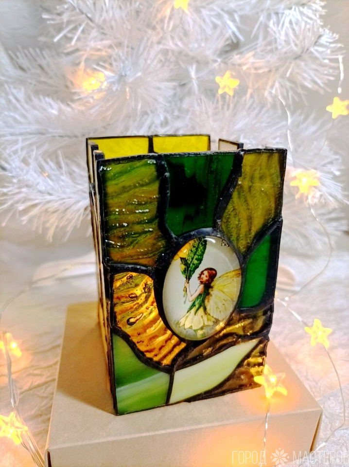 Светильник "Дюймовочка" из витражного стекла выполнен в технике Тиффани