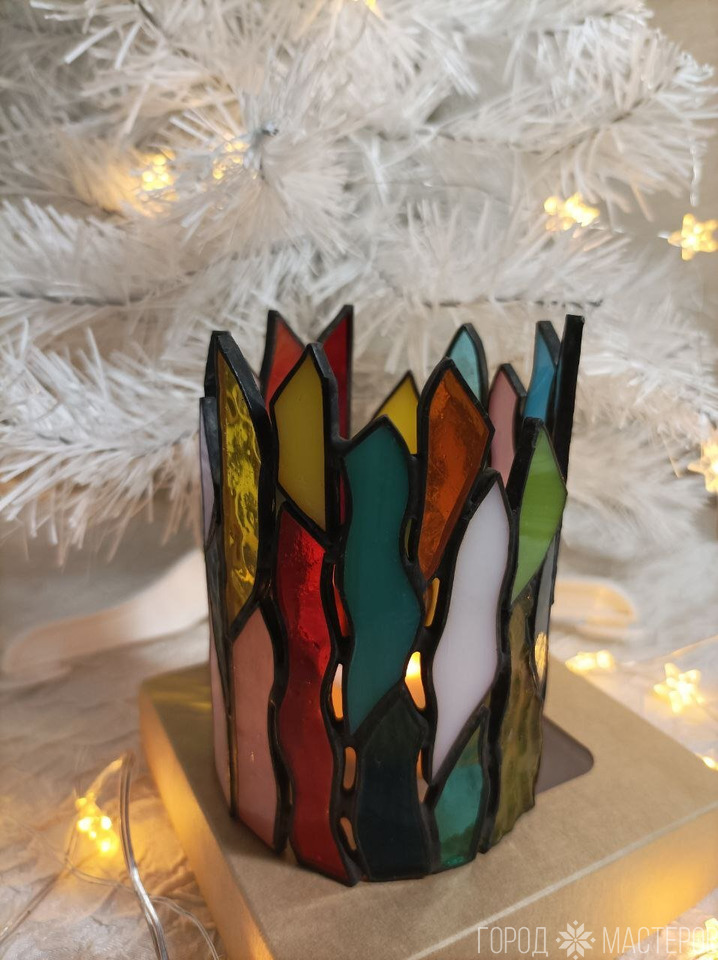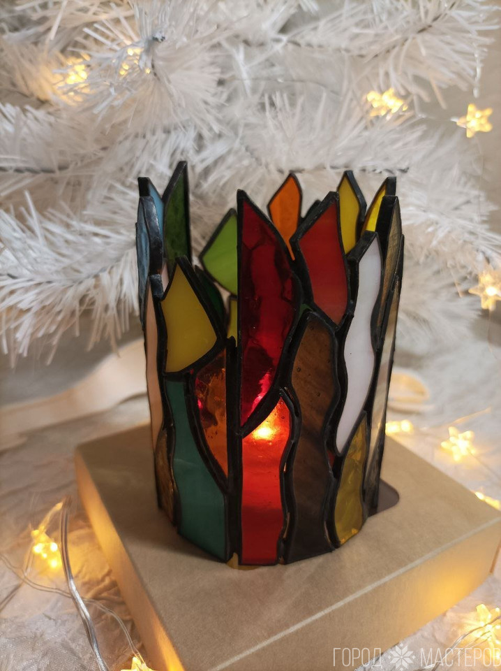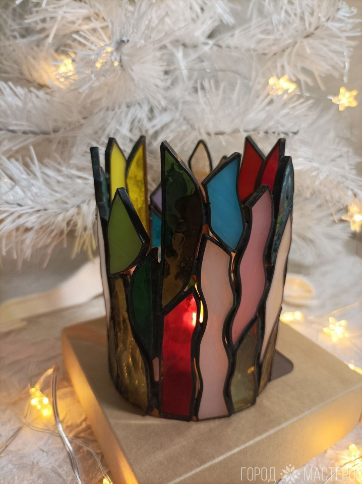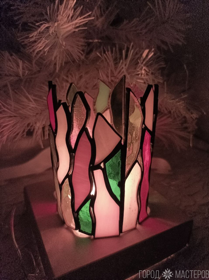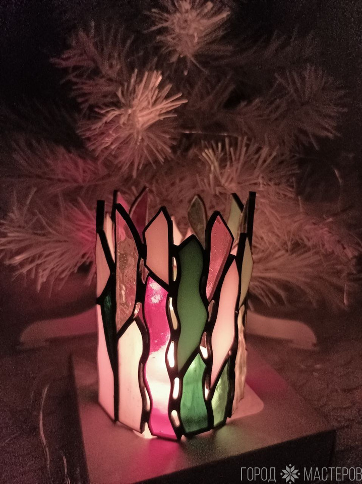 Светильник ночник круглый из витражного стекла выполнен в технике Тиффани