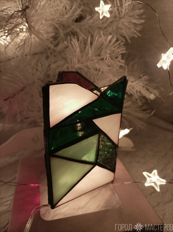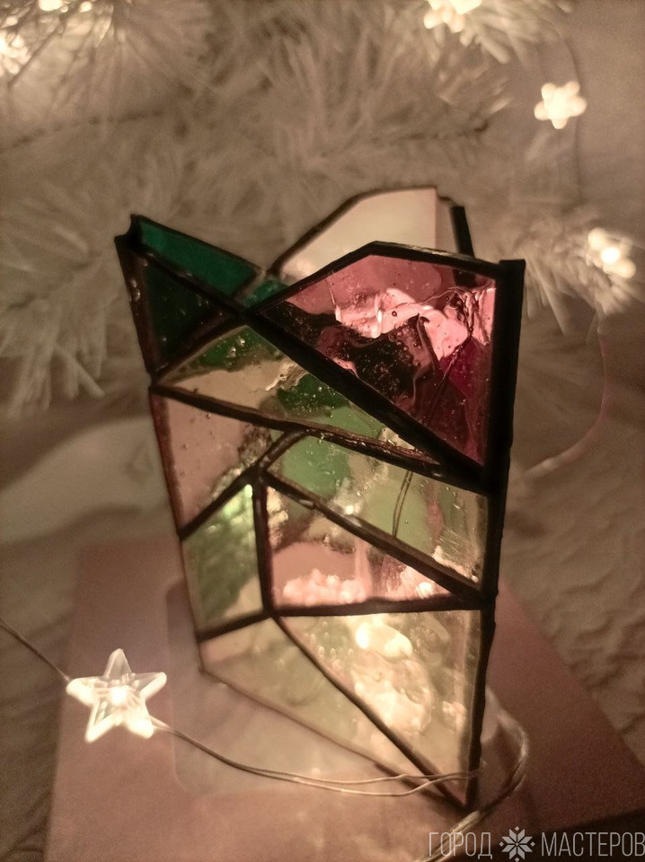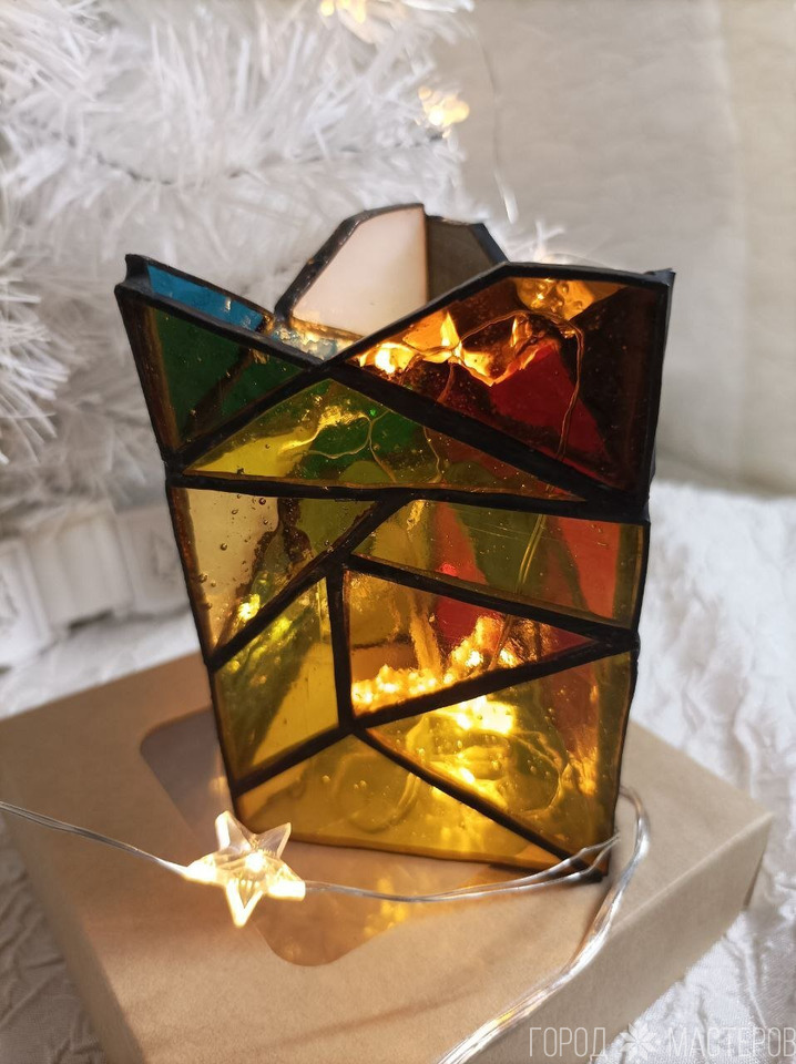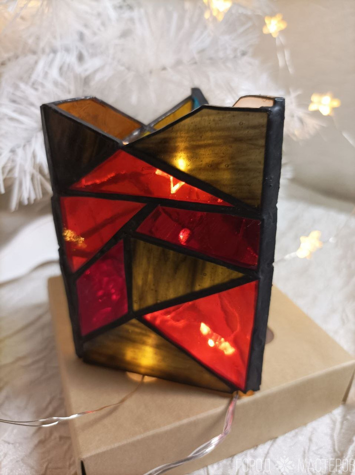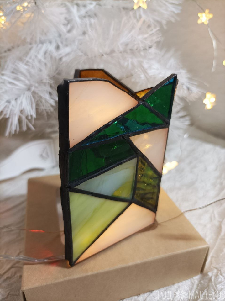 Светильник "Треугольник" из витражного стекла выполнен в технике Тиффани