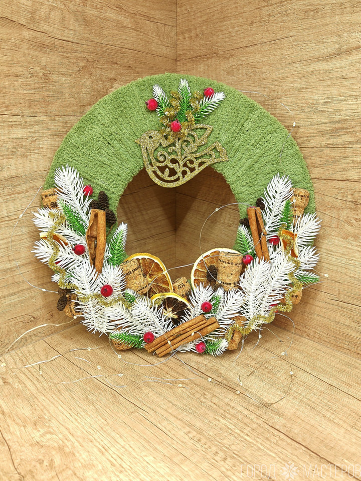 Гирлянда из литой ели, стеклянные игрушки, гирлянда светодиодная "роса", декоративные веточки, искусственные ветки ягод Длина композиции 115см Ручная работа выполнена из качественных материалов
