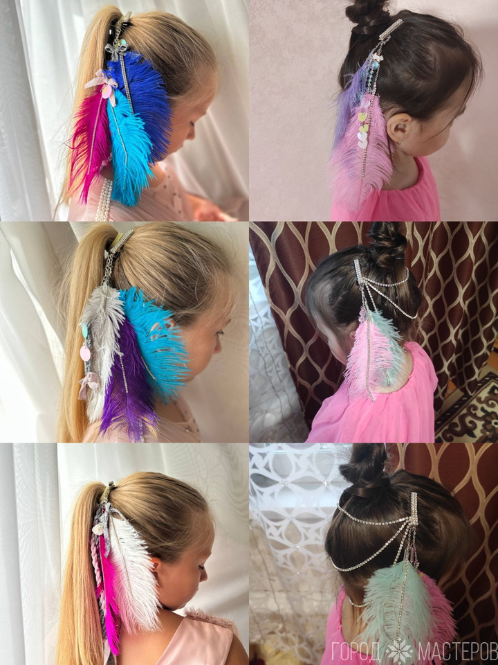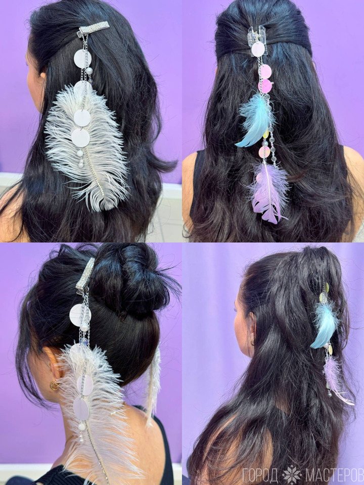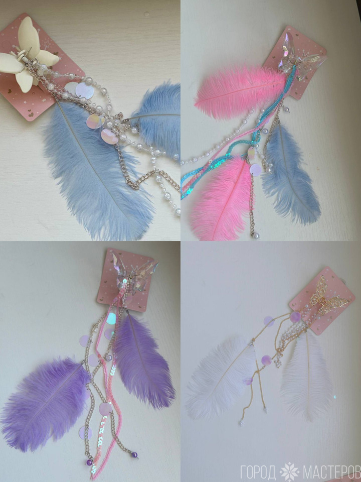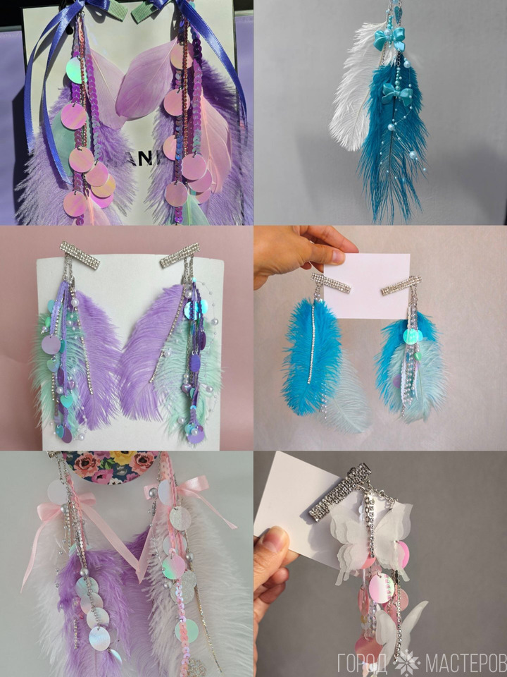 Нежное, воздушное украшения из перьев ,цепочек, пайеток, бусин, подвесок!