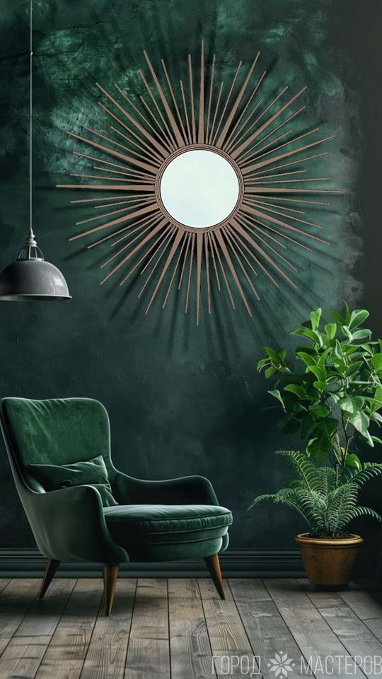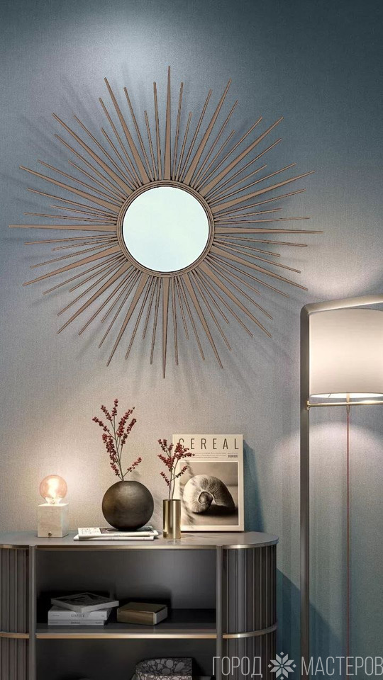 Зеркало Helios темная бронза. Модель отлично подойдет для большинства интерьеров. От Mid century modern до арт-деко. Сделанное вручную, с душой,зеркало украсит любой уголок вашего помещения. Малая серия. Диаметр 110 см,зеркало 30 см. Доставка по России и Беларуси( до двери с оплатой при получении)